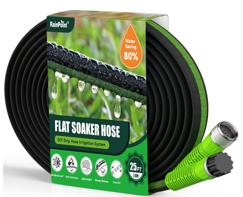 Gift 1: 25ft Flat Soaker Hose: It can save 80% Water-Saving Drip Irrigation Hose, Leakproof and Flexible with Anodized Aluminum Ends, Double Layer Gardening Hoses for Gardens.