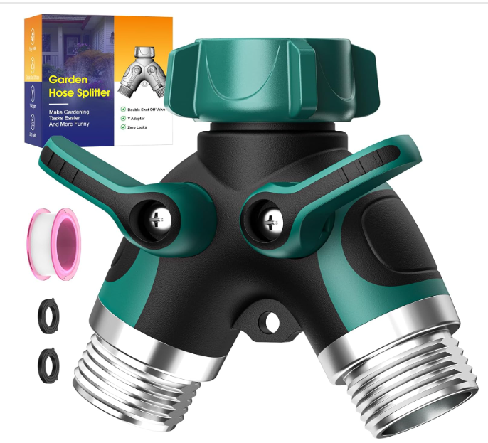 Gift 2: 3/4-inch Garden Hose Splitter 2 Way: It's suitable for busy gardening enthusiasts. Each outlet has a flow control valve, allowing you to meet different watering needs simultaneously.
