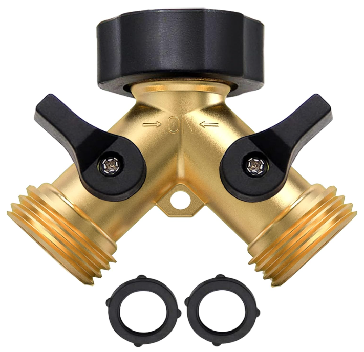 Gift 2: 3/4-inch Garden Hose Two-Way Splitter: It's suitable for busy gardening enthusiasts. Each outlet has a flow control valve, allowing you to meet different watering needs simultaneously.